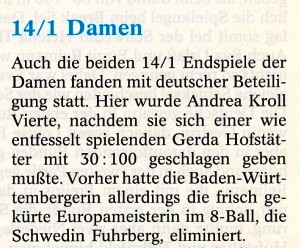 8-Ball Vizemeisterin Ilona Bernhard, Sylvia Buschhüter und Gerda Hofstätter belegten Platz 3 | |