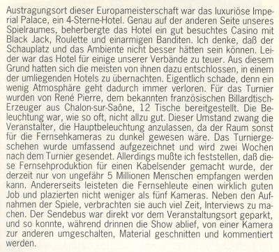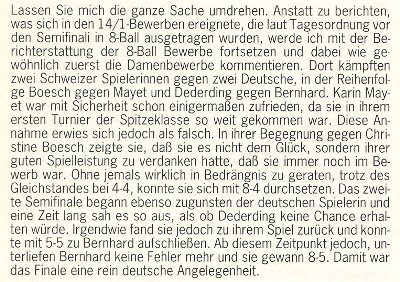 Das Deutsche Team bei der 8-Ball und 14.1-Einzel EM 1994 in Annecy/Frankreich v.l. (oben) Bernd Jahnke, Herbert Friedemann, Michaela Rank, Andreas Vondenhoff, Ilona Bernhard, Karin Mayet, Marco Schachner, und Werner Ertel (vorn) v.l. Toni Deigner, Oliver Ortmann, Thomas Engert, Ralf Souquet, Gabi Straub, Franziska Stark, Monja Kielhorn, Thomas Hasch und Thorsten Beering |