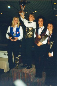 Das Deutsche Team bei der Europameisterschaft 1998 in Luxembourg v.l Susanne Bahnsen, Michaela Rank, Ilona Bernhard, Bernd Jahnke, Werner Ertel, Thomas Engert, Sylvia Buschhüter, Ralf Souquet, Oliver Ortmann, Franziska Stark, Thorsten Hohmann und Sandra Ortner |
