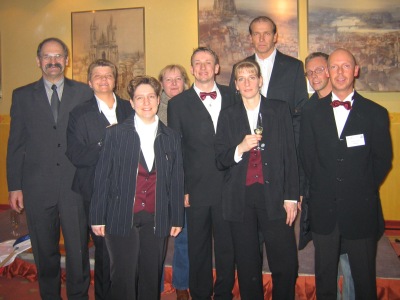 Das Deutsche Team bei der EM 2004 in Prag v.l. Team Chef Werner Ertel, Wienke Thamsen, Daniela Benz, Franziska Stark, Thomas Engert, Sandra Ortner, Oliver Ortmann, Thorsten Hohmann und Ralf Souquet | ||||||||||||||||||||||||||||||||||||||||||||||||||||||||||||||||||||||||||||||||||||||||||||