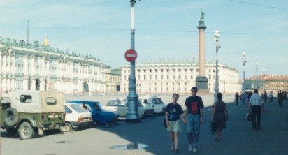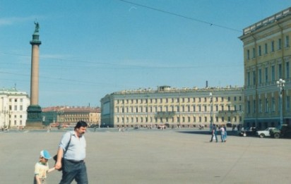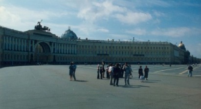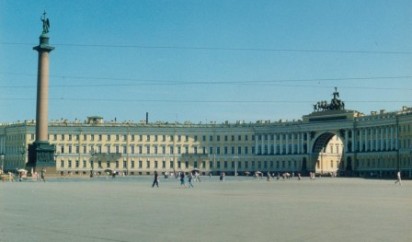 Der riesige Platz vor der Eremitage, der Kunstsammlung in Leningrad |