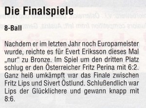 Fritz Lips gewann Gold im 8-Ball - Einzel und Gold mit der Mannschaft |