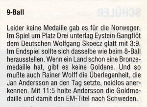 Wolfgang Skoecz gewann Bronze im 9-Ball - Einzel und Gold mit der Mannschaft |
