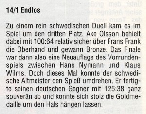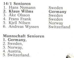 Klaus Wilms gewann Silber im 14.1-Einzel und Gold mit der Mannschaft |