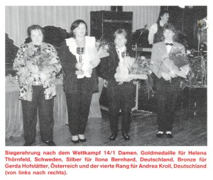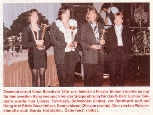 8-Ball Vizemeisterin Ilona Bernhard, Sylvia Buschhüter und Gerda Hofstätter belegten Platz 3 | |