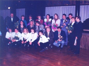 Team-Europameister - Deutschland in Ljubliana/Jugoslavien 1992 v.l. Team Chef Werner Ertel, Franziska Stark, Sascha Zinowski, Uwe Sauerland, Sabine Kamplade, Birgit Reimann, Eva Urlass, Thomas Engert, Ilona Bernhard, Ralf Souquet, Andrea Kroll, Thomas Hasch und Oliver Ortmann |
