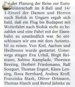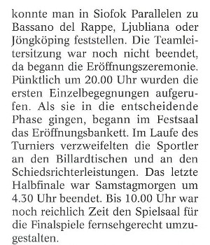 Im Hotel Ezüstpart fand die 14.1-Einzel und 8-Ball Europameisterschaft 1993 statt. |