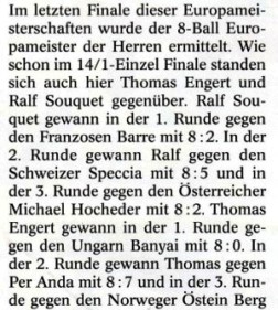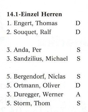Siegerehrung 14.1-Einzel Herren Europameister - Thomas Engert, Vize-Meister - Ralf Souquet, Platz 3 belegten Michael Sanzelius und Per Anda |