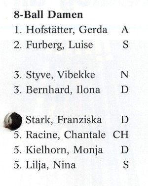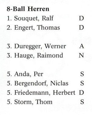Siegerehrung 8-Ball Einzel Herren Europameister - Ralf Souquet Vizemeister - Thomas Engert Platz 3 belegten Reimond Hauge und Werner Duregger |