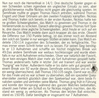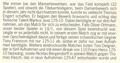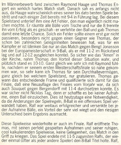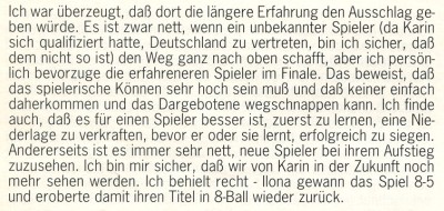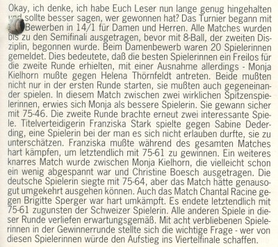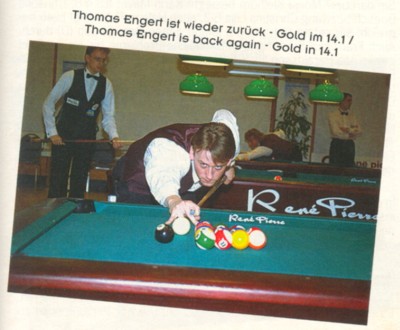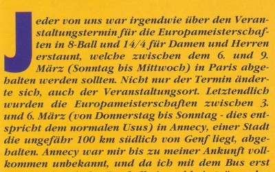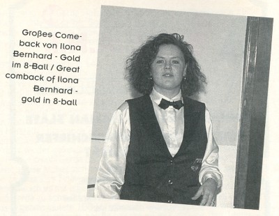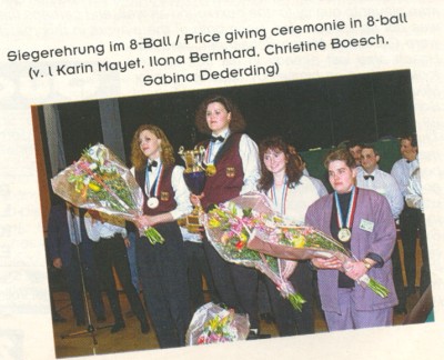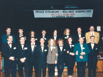 Das Deutsche Team bei der 8-Ball und 14.1-Einzel EM 1994 in Annecy/Frankreich v.l. (oben) Bernd Jahnke, Herbert Friedemann, Michaela Rank, Andreas Vondenhoff, Ilona Bernhard, Karin Mayet, Marco Schachner, und Werner Ertel (vorn) v.l. Toni Deigner, Oliver Ortmann, Thomas Engert, Ralf Souquet, Gabi Straub, Franziska Stark, Monja Kielhorn, Thomas Hasch und Thorsten Beering |