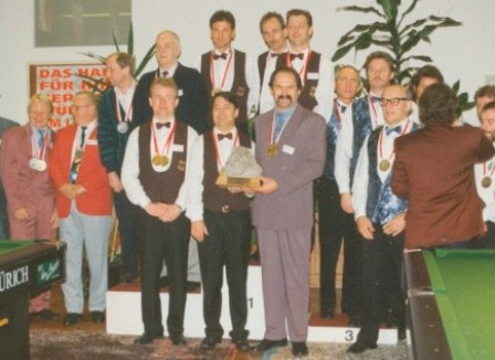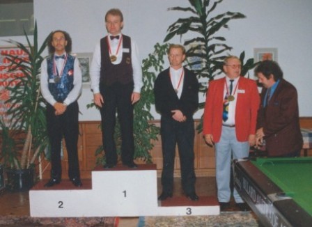 Siegerehrung 8-Ball Einzel Europameisterschaft in Interlaken Peter Börgers, 8-Ball Europameister 1994 |