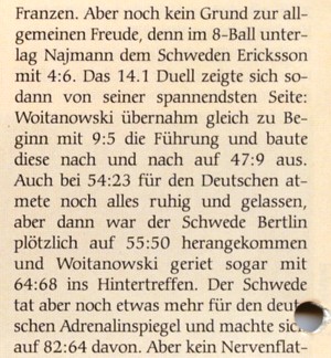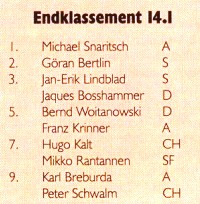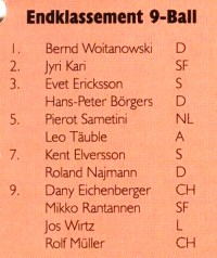 Siegerehrung 9-Ball Einzel Senioren 1994 Europameister Bernd Woitanowski |