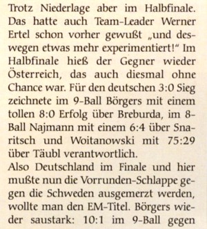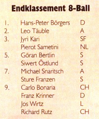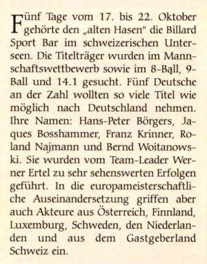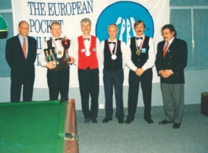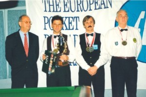 Siegerehrung 8-Ball Einzel Senioren 1994 Europameister Hans-Peter Börgers |