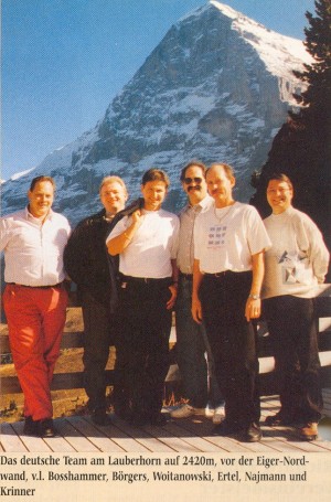 v.l. Team Chef Werner Ertel, Jac Bosshammer, Hans- Peter Börgers, Bernd Woitanowski, Roland Najmann und Franz Krinner, - EUROPAMEISTER 1994 |