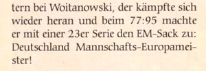 Das Deutsche Senioren Team wurde gerade Europameister. Das Ergebnis von Hans-Peter Börgers gegen Sture Fransson steht rechts, 10:1... |