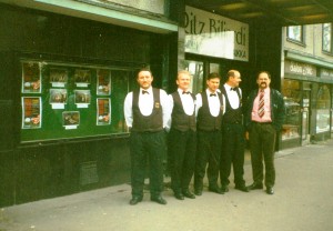 Das Deutsche Team, in einer Pause vor dem Ritz, v.l. Günter Lechl, Hans-Peter Börgers, Bernd Woitanowski, Willi Ludwig und Werner Ertel |