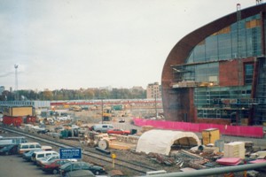 Der Bahnhof von Helsinki - hinten eine riesige Baustelle - und der Eingang vorn... |