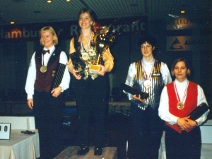 Das Deutsche Team bei der Europameisterschaft 1998 in Luxembourg v.l Susanne Bahnsen, Michaela Rank, Ilona Bernhard, Bernd Jahnke, Werner Ertel, Thomas Engert, Sylvia Buschhüter, Ralf Souquet, Oliver Ortmann, Franziska Stark, Thorsten Hohmann und Sandra Ortner |