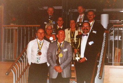 Das Deutsche Team v.l.oben Werner Ertel, Willi Ludwig, Bernd Woitanowski, Günter Geisen, Ralf Waschkewitz, Charly Kress, Brigitte Ganze, Angelika Weber und Trixi Schulz | |