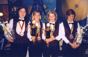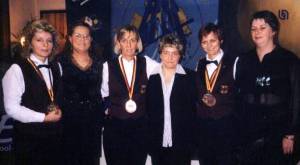 8-Ball Europameisterschaft 2002 in Fulda/Deutschland 1. Ralf Waschkewitz (D) 2. Günter Geisen (D) 3. Jörg Rywotzki (D) 3. Stella Olofsson (S) 9-Ball Europameisterschaft 2002 in Fulda/Deutschland 1. Karl Hanscho (A) 2. Gianni Campagnolo (I) 3. Jörg Rywotzki (D) 3. Willi Ludwig (D) 14.1- Europameisterschaft 2002 in Fulda/Deutschland 1. Kent Karlsson (S) 2. Günter Geisen (D) 3. Enzio Renzi (I) 3. Karl Hanscho (A) 8-Ball Europameisterschaft 2002 in Fulda/Deutschland 1. Klara Lensing (D) 2. Karin Bogs (D) 3. Cornelia Pauritsch (D) 3. Petra Hoffmann (D) 9-Ball Europameisterschaft 2002 in Fulda/Deutschland 1. Cornelia Pauritsch (D) 2. Petra Hoffmann (D) 3. Klara Lensing (D) 4. Karin Bogs (D) |