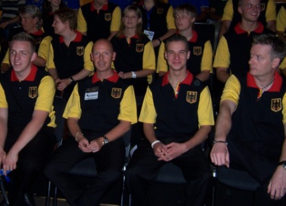Das Deutsche Team. v.l. Schröter, Roschkowsky, Köster, Souquet, Lüttich, Wiechert, Kaplan, Benz, Schwan, Ortmann, Meinhold, Brehme, Statezcny, Gries, Ganze, Geisen, Reimann, Vogelmann, Lensing, Buschhüter und Ertel |