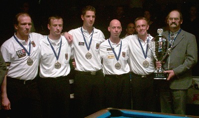 EUROPAMEISTER 2005 v.l. Oliver Ortmann, Thomas Engert, Nico Ottermann Ralf Souquet, Thorsten Hohmann und Team Chef Werner Ertel |
