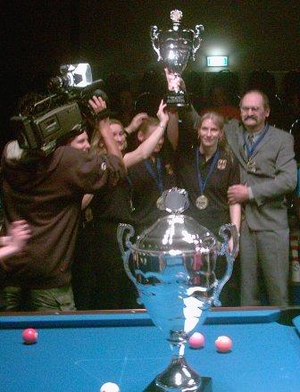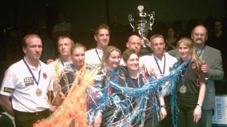 In Veldhoven wurde das Deutsche-Damen und das Herren-Team EUROPAMEISTER 2005 v.l. Oliver Ortmann, Thomas Engert, Diana Stateczny, Nico Ottermann, Susanne Wessel, Daniela Benz, Ralf Souquet, Thorsten Hohmann, Sandra Ortner und Team-Chef Werner Ertel