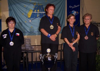 Senioren 8-Ball 1 Geisen Günter, (D) 2 Järledahl Stan (S) 3 Rywotzki Jörg (D) 3 Margola Giorgio (I) Senioren 9-Ball 1 Damm Thomas, D 2 Margola Giorgio, I 3 Leykamm Andreas, D 3 Eriksson Hans, S Senioren 14.1-endlos 1 Hanscho Karl, A 2 Damm Thomas, D 3 Geisen Günter, D 3 Evans Steve, GB Senioren Team 1 Germany 2 Sweden 3 Italy 3 Austria Ladies 8-Ball 1 Lensing Klara, D 2 Weber Angelika, D 3 Frosterus Marjella, FIN 3 Oeschger Monika, CH Ladies 9-Ball 1 Weberstetter Illa, D 2 Zalmanova Ilona, CZ 3 Ganze Brigitte, D 3 Lensing Klara, D |
