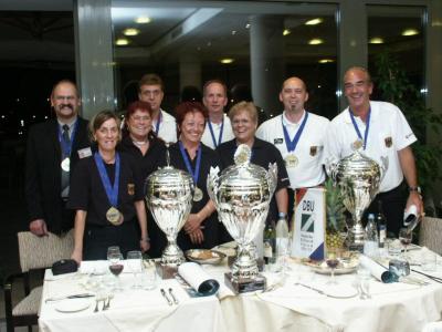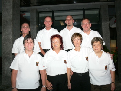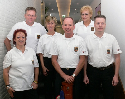 Das Deutsche Senioren Team bei der EM 2006 in Mikolow/Polen v.l. (oben) Jürgen Baumgärtner, Günter Geisen, Thomas Damm und Olaf Köster, (vorn) v.l. Petra Hoffmann, Illa Weberstetter, Klara Lensing und Helga Blawid | ||||||||||||||||||||||||||||||||||||||||||||||||||||||||||||||||||||||||||||||||||||||||||||