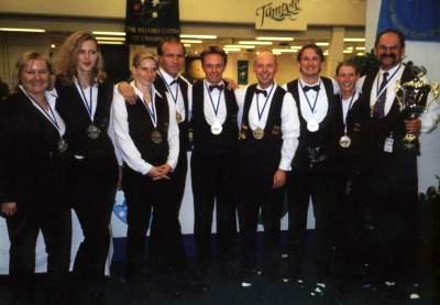 Das Deutsche Senioren Team bei der EM 2000 in Göteborg/Schweden v.l. Willi Ludwig, Brigitte Ganze, Charly Kress, Trixi Schulz, Günter Geisen, Ralf Waschkewitz, Angelika Weber, Werner Ertel und Bernd Woitanowski | ||||||||||||||||||||||||||||||||||||||||||||||||||||||||||||||||||||||||||||||||||||||||||||