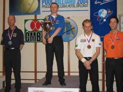 Europameisterschaft 2004 9-Ball-Einzel Herren in Prag/Tschechische Republick EUROPAMEISTER Thomas Engert VIZEMEISTER Ralf Souquet Platz 3 Oliver Ortmann |