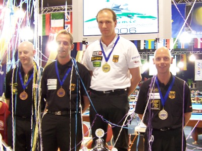 Europameisterschaft 2006 14.1-Einzel Herren in Brandenburg/Deutschland EUROPAMEISTER Oliver Ortmann VIZEMEISTER Ralf Souquet Platz 3 Christian Reimering |