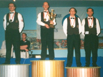 Europameisterschaft 1997 8-Ball-Einzel Herren in Stavanger/Norwegen EUROPAMEISTER Bernd Jahnke VIZEMEISTER Ralf Souquet Platz 3 Oliver Ortmann |