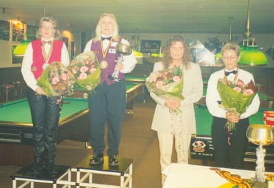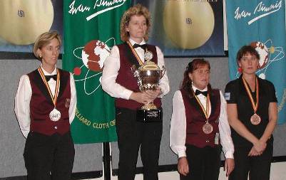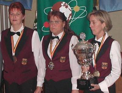 EUROPAMEISTERSCHAFT 2001 8-Ball-Einzel Ladies Europameisterin, Klara Lensing Vize-Europameisterin, Trixi Schulz Angelika Weber, Platz 3 |