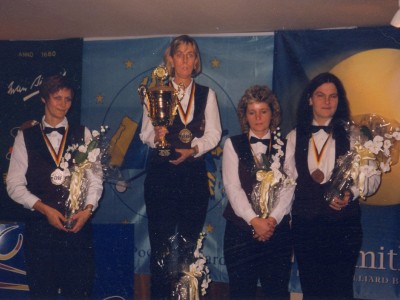 9-Ball Europameisterschaft 1999 in Seget-Trogir/Croatien 1. Sylvia Hutter (A) 2. Rici Martens (NL) 3. Ulla Haltunnen (FIN) 3. Fränzi Biasca (CH) |