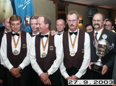 Europameisterschaft Oostende/Belgien 2003 Europameister -DEUTSCHLAND- v.l. Willi Ludwig, Jörg Rywotzki, Holger Gries Günter Geisen, Werner Kohnle Ralf Waschkewitz und Werner Ertel |