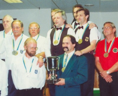 Europameisterschaft Jöngköping 1992 Europameister -DEUTSCHLAND- v.l. (hinten halb verdeckt) Wolfgang Skoecz und Klaus Wilms, Rainer Wolf, Fritz Lips und Team-Chef Werner Ertel |
