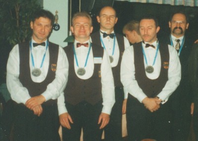 Europameisterschaft Uterseen/Schweiz 1995 Europameister -DEUTSCHLAND- v.l. Team-Chef Werner Ertel, Jac Bosshammer Franz Krinner, Roland Najmann Hans-Peter Börgers und Bernd Woitanowski. |