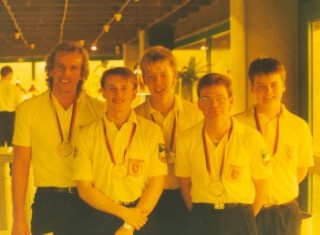 PBC Rot-Gelb Stolberg I - Bundesliga 1988 Platz 4 v.l. Karl-Heinz Hamacher, Thomas Engert, Jürgen Bittner, Jürgen Fecho und Florian Scholl |