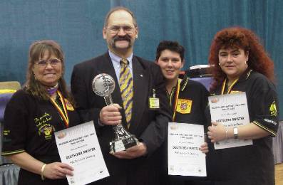 DEUTSCHER MEISTER 2002 und LANDESMEISTER 2002 Damen-Kombi-Mannschaft - PBC Rot-Gelb Stolberg v.l. Angelika Weber, Werner Ertel, Janine Drescher und Diana Pohl |