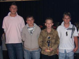 VERBANDSMEISTER 2006 Jugend-Kombi-Mannschaft PBC Rot-Gelb Stolberg v.l. Sven Keller, Kevin Jansen, Sven Hagen und Pascale Ortmanns |