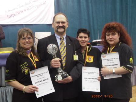 Die Damenmannschaft des PBC Rot-Gelb Stolberg wurde Deutscher Meister 2002 v.l. Angelika Weber, Werner Ertel, Janine Drescher und Diana Pohl. | ||||||||||||||||||||||||||||||||||||||||||||||||||||||||||||||||||||||||||||||||||||||||||||||||||||