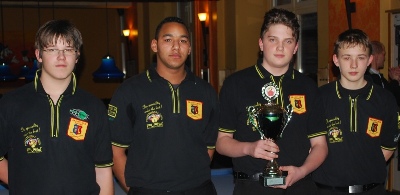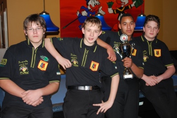 Bei den Landesmeisterschaften am 10.01.2010 wurde die Jugendmannschaft des PBC Rot-Gelb Aachen, Vizemeister und qualifizierte sich für die Deutsche Meisterschaft. v.l. Stephan Waldeck, Sven Hagen, Meikel Asamoah und Marko Milovanocic. | ||||||||||||||||||||||||||||||||||||||||||||||||||||||||||||||||||||||||||||||||||||||||||||||||||||